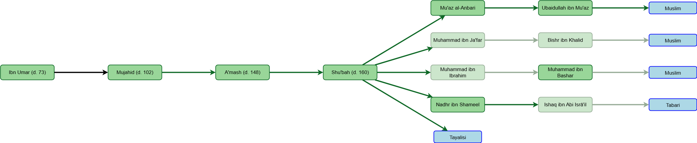 Shu’bah was a major authority of hadith in his generation and a known student of A’mash. He was called ‘the father of hadith sciences’, and he systematized the idea of verifying narrators and chains in his milieu.